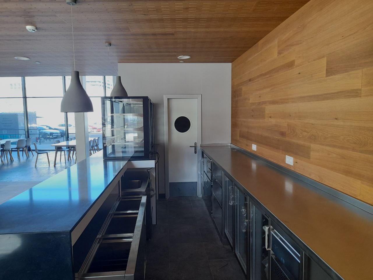 Bilbao Centros educativos 2023 En la isla de Zorrotzaurre, diseñamos la cocina para el restaurante y la cafetería de Bilbao AS Fabrik Campusa.Con mobiliario hecho a medida, este proyecto destaca por tener un gran ventanal que simula una cocina abierta.