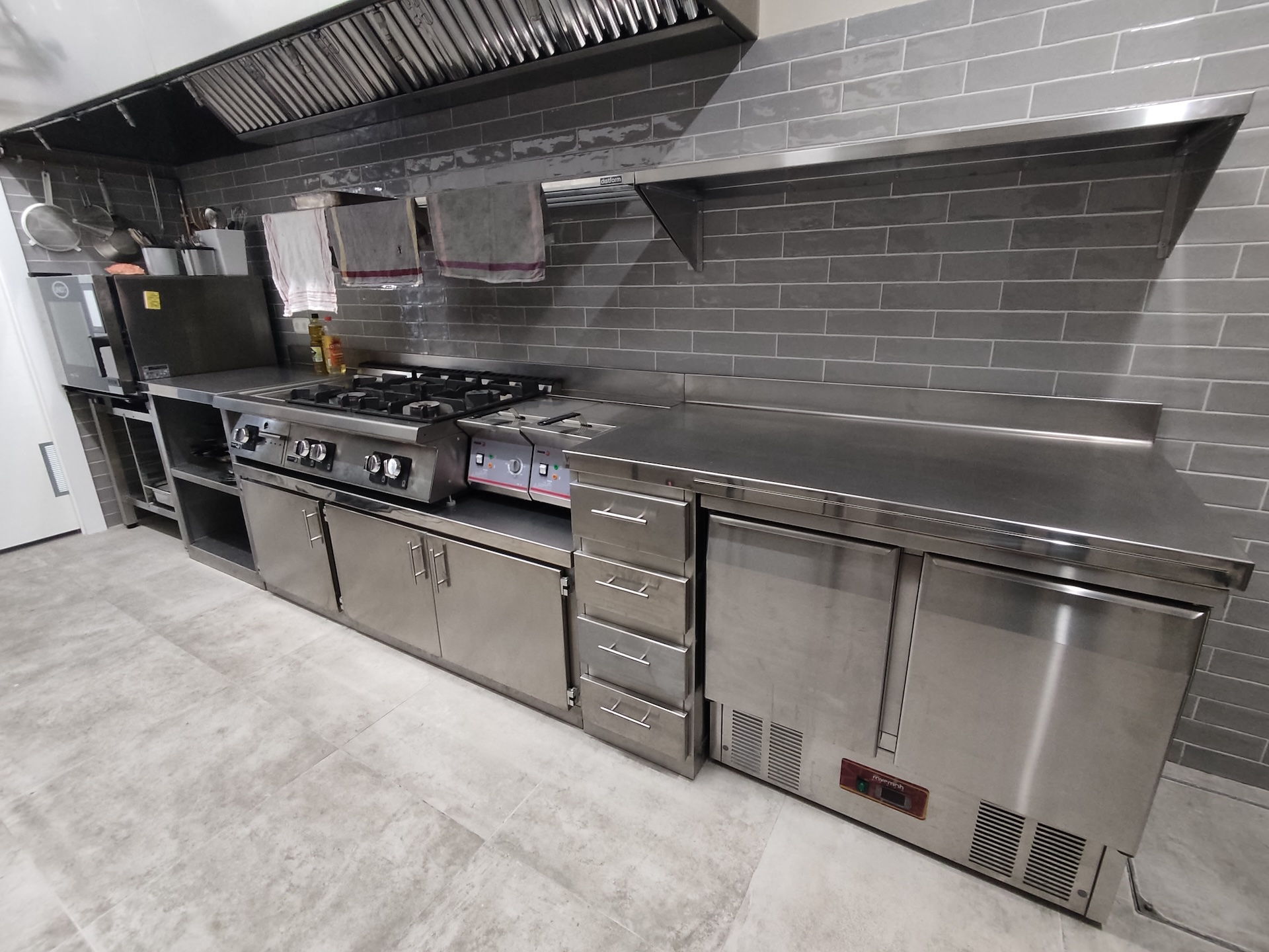 Diseñamos la cocina profesional de este restaurante japonés, atendiendo a los requisitos específicos de su propuesta gastronómica. Se priorizó la funcionalidad, la limpieza visual y la disposición eficiente de los elementos para adaptarse a las técnicas propias de una cocina japonesa contemporánea.